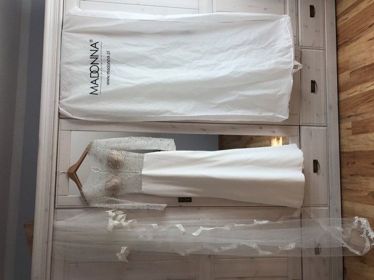 Witam. Mam do sprzedania przepiękną suknię ślubną. Sukienka ta została zakupiona tego roku w lipcu. Model sukienki to DOR 210 kolor ciepła biel(nie écru, ani kość słoniowa). Jest to sukienka na szczupłą osobę ; ja mam wymiary 84 cm (klatka piersiowa), 60cm (w pasie), 86 cm (w biodrach) , mniej więcej na wzrost 160cm-168cm(ja mama 165 cm) do sukienki założyłam 10 cm buty na obcasie. Sukienka jest po praniu chemicznym i jest w stanie idealnym, gotowa do użytku. Oczywiście do sukienki dołączam welon XXL. Całkowity koszt sukienka + welon 2000 zł. Możliwość przesłania więcej zdjęć. W razie pytań proszę o kontakt 516 384 631