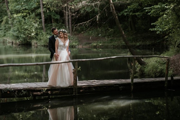 Dodatkowo do sukni dołączona jest poszetka dla Pana Młodego wykonana z materiału z którego uszyta jest suknia.