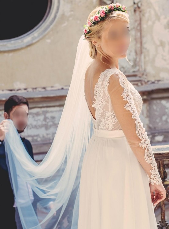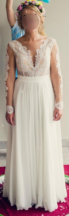 Na sprzedaż suknia ślubna w kolorze IVORY w rozmiarze 34/36 szyta na wzrost 160cm+ obcas 10cm. Została zakupiona w salonie w Katowicach. Suknia w stanie idealnym, brak uszkodzeń oraz jakichkolwiek przebarwień. Po ślubie została wyczyszczona w pralni chemicznej.