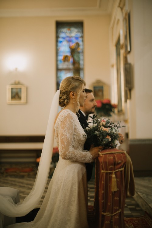 Gratis dodaje długi jedwabny welon w kolorze sukni.