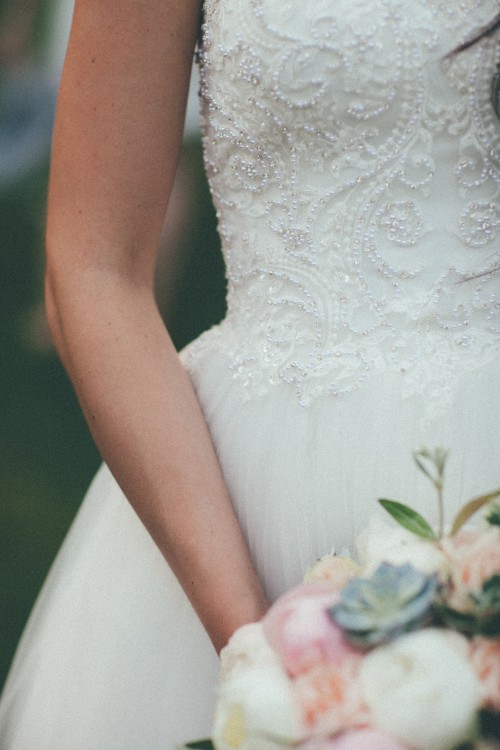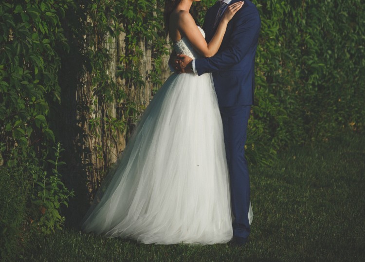 Dół wykonany z tiulu, który nie jest sztywny, bardzo dobrze się układa. Pod spodem halka, bez dodatkowego koła, dzięki czemu suknia wygląda bardzo delikatnie, nie tworząc efektu „bezy”.