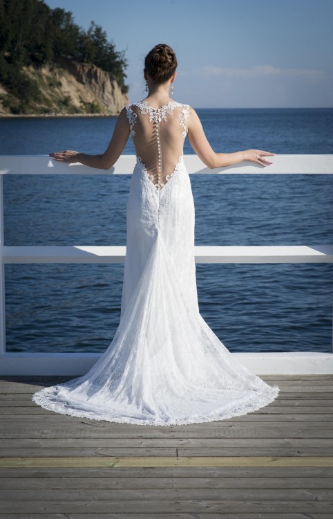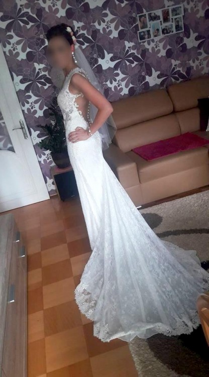 Długi tren, odkryte plecy , oraz pięknie wycięty przód podkreślają wyjątkowość tej sukni, a także powodują zachwyt wśród gości.