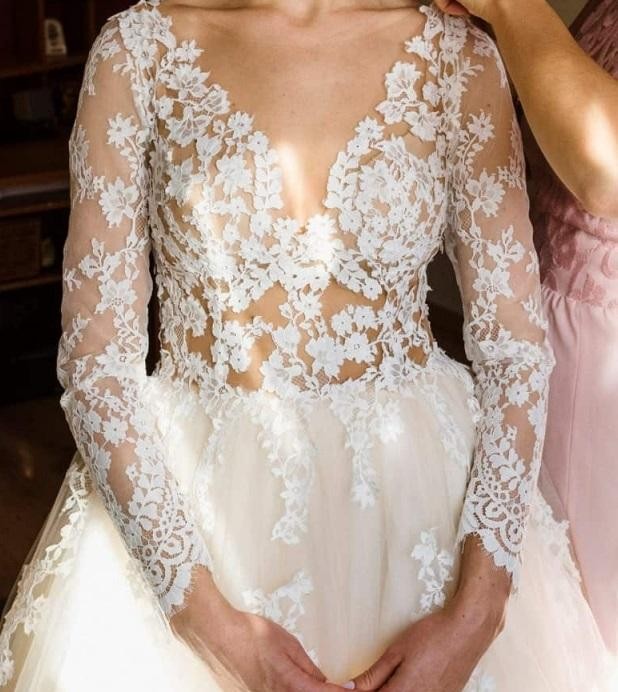 Rękawy do sukni są doszywane , istnieje możliwość wykonania rękawów dopinanych jednak ja zdecydowałam się na doszywane aby uniknąć "drapania" po odpięciu . ( rękaw jest nieco za nadgarstek).
