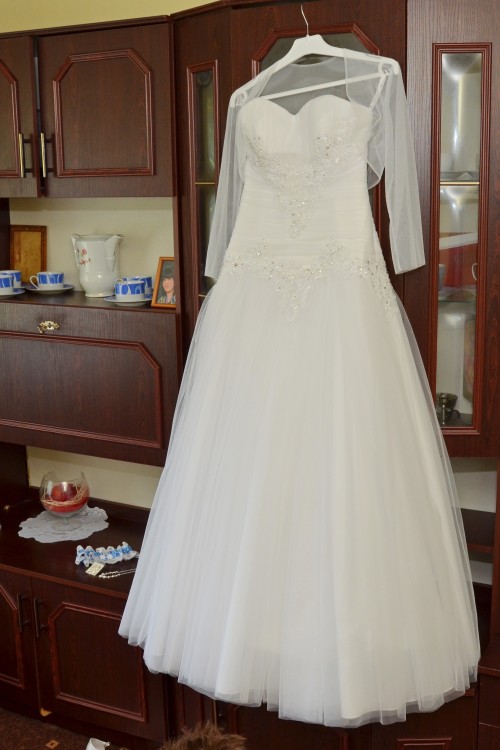 Do sukni gratis dorzucam welon,pokrowiec na suknię oraz buty w rozmiarze 39,które posiadają ślady użytkowania.