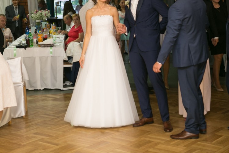 Suknia ubrana 2 razy, po czyszczeniu w pralni chemicznej. Pięknie prezentuje się w czasie tańca.