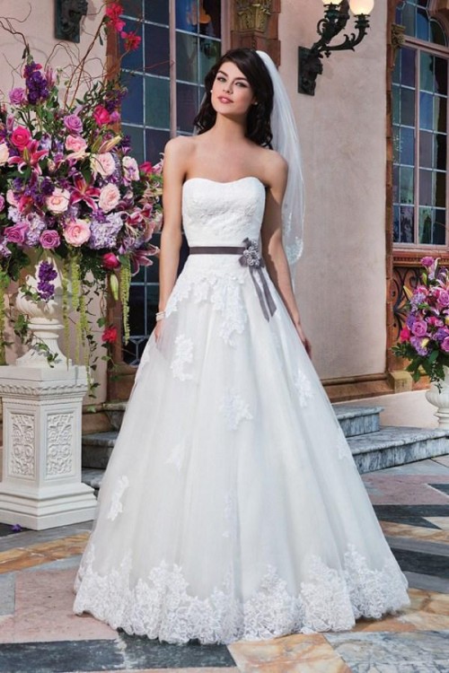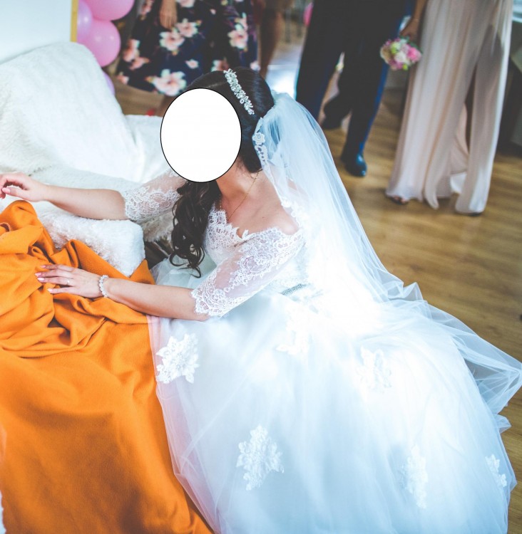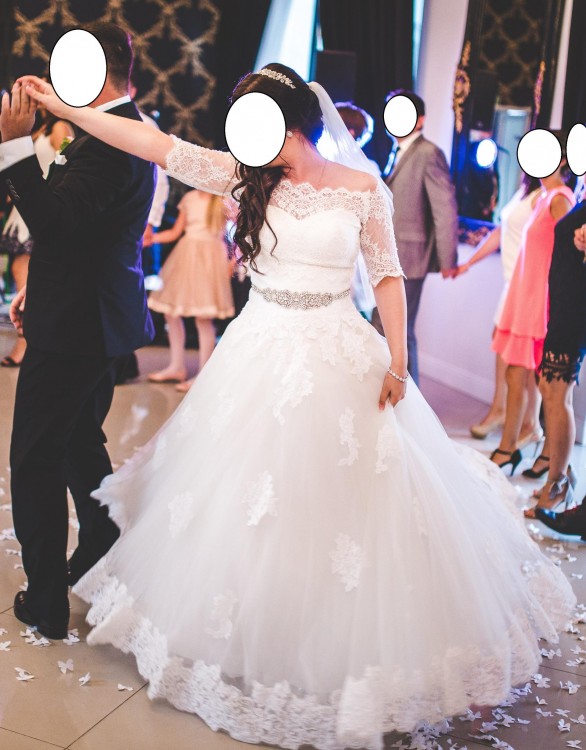 Tiulowa suknia balowa ( princessa), wzbogacona francuską koronką alencon, bez ramiączek, dekoltem w kształcie serduszka, guziki obszyte tkaniną, maskują suwak. Suknia jest jednoczęściowa. Suknia jest niezwykle wygodna, lekka i zwiewna, efektownie układająca się w tańcu. Suknia kupiona była w Salonie Sukien Ślubnych w Białymstoku za kwotę 4500zl. Sukienka jest w idealnym stanie została wyprana chemicznie. Czułam się w niej wyjątkowo i romantycznie jak księżniczka. Suknia jest pełna subtelności i elegancji, wyczarowała bajkową oprawę perfekcyjne podkreśla osobliwość i urok Panny Młodej. Stworzona została przez najznamienitszych projektantów łączy w sobie doskonałość i niepowtarzalność, szczyptę romantyzmu i wyrafinowanego flirtu. Rozmiar sukni 38/40 ale można ją bez problemu zwęzić jak i poszerzyć. jest na wzrost 170 plus obcas 9cm.