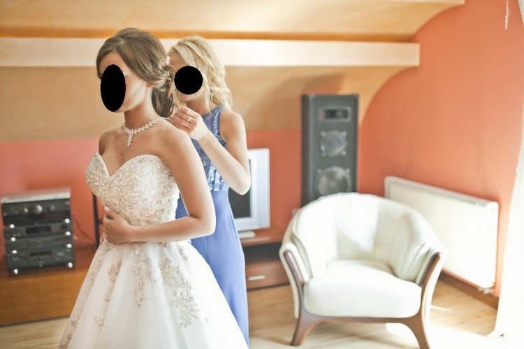 Suknia szyta pod wymiar rozmiar 34/36 pięknie zdobiona. Dla osoby 160 cm plus 10 cm szpilki. Suknia była używana wraz z kołem, które również dołączam do sukni.