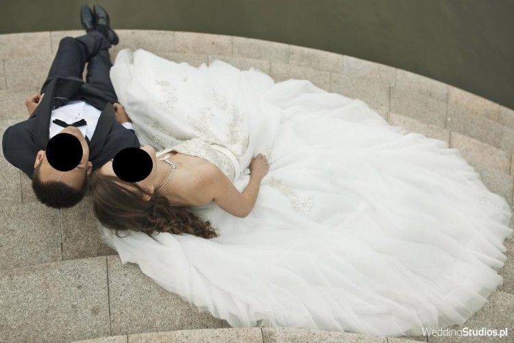 Suknia w kolorze szampańskim.