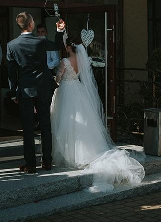 Do sukni dodaję tren i długi welon.