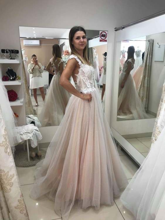 Suknia zrobiła wrażenie na wszystkich gościach, usłyszałam wiele komplementów na jej temat, a przede wszystkim dla mnie była spełnieniem moich marzeń. Jest niesamowicie lekka i zwiewna, nie krępuje ruchów, odpowiednio założona trzyma się przez cały czas na swoim miejscu. To suknia dla kobiety, która w tym dniu chce się czuć jak księżniczka, zostając przy tym delikatną i romantyczną.