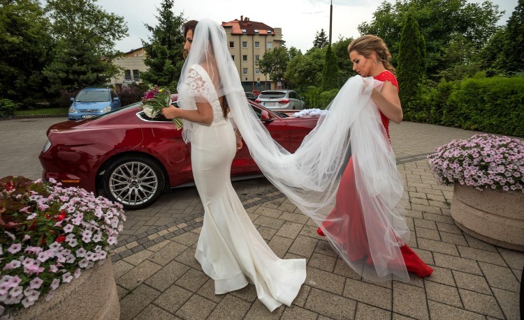 Posiadam również 4m welon podpinany z tyłu w stylu amerykańskim - dodatkowy welon z przodu, zakrywający twarz. Pan Młody odsłonił welon, dopiero przy ołtarzu.