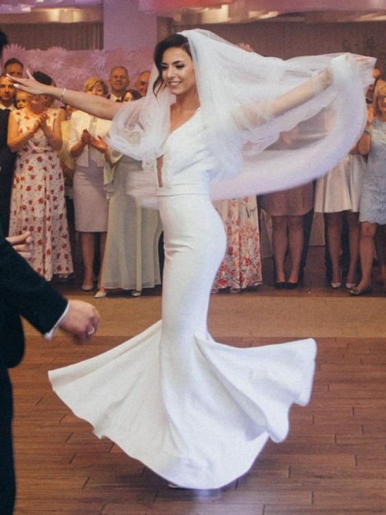 Suknia zrobiona jest z mięsistego materiału, lekko rozciągliwego dzięki czemu była bardzo wygodna i komfortowa podczas jej noszenia.