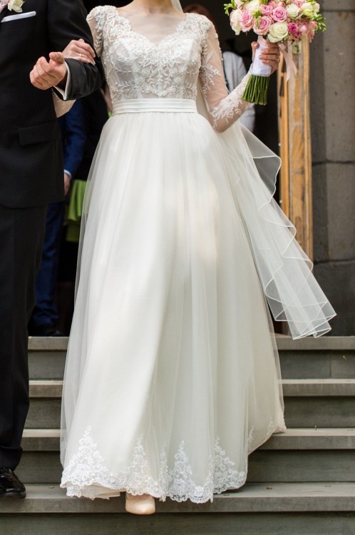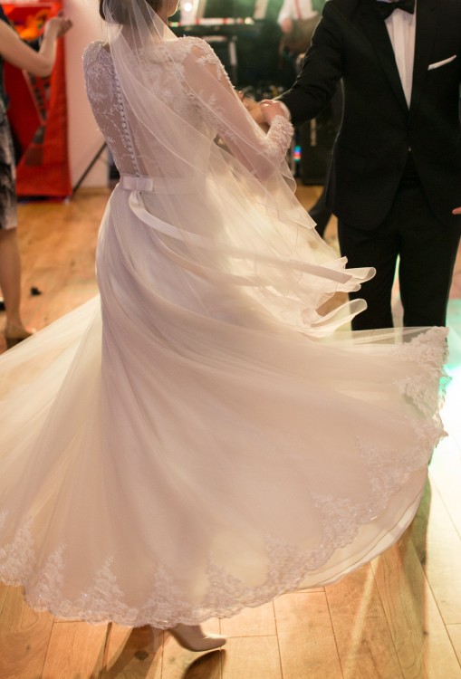 Suknia była założona w dniu ślubu i na sesję plenerową w maju br. Jestem pierwszą jej właścicielką.