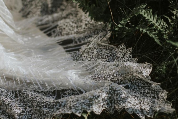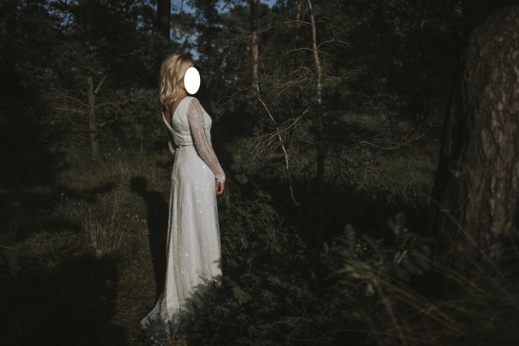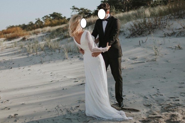 Suknia pięknie prezentuje się na żywo, wykonana z koronki wykończonej koralikami i cekinami, dół sukni z delikatnym trenem z koronkowym wykończeniem, dopracowana w najmniejszych szczegółach, pięknie rozświetla twarz oraz nadaje blask, bardzo wygodna, w stanie idealnym. Suknia przeznaczona dla Pań, które w tym dniu chcą wyglądać wyjątkowo, jednocześnie odbiegając od tendencyjnych koronek oraz muślinów. Zachęcam do oglądania na gdańskiej Zaspie.