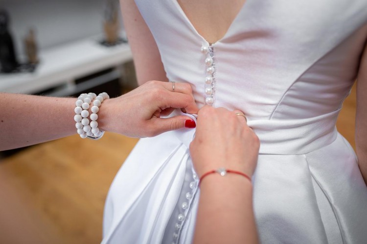 Suknia ślubna mikado perłowa