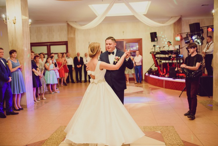 Suknia bardzo elegancka i lekka co sprawia, że jest bardzo wygodna. Pięknie układa się w tańcu. Kokardki na plecach dodają sukni wdzięku.