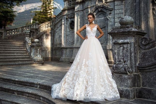 Sprzedam przepiękną suknię ślubną marki MILLA NOVA model MILENA, kolor-śmietankowa biel, lekko brzoskwiniowa.
