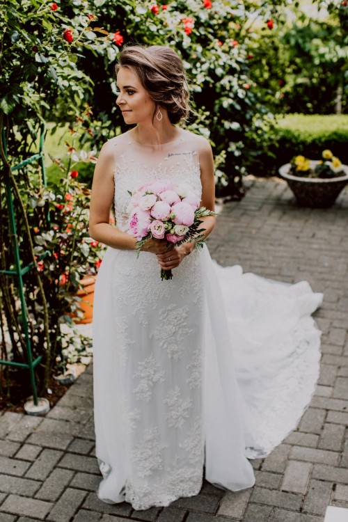 Suknia posiada dodatkowy tren, zapisany w pasie, który czynią ją jeszcze piękniejszą. Jestem jej pierwszą właścicielką. POLECAM!