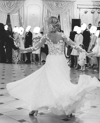 Suknia na żywo prezentuje się cudownie, pięknie wiruje w tańcu.