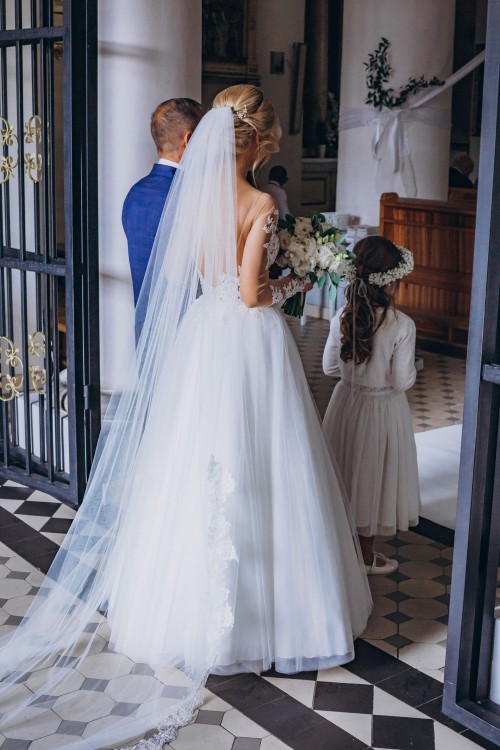 Suknia pieknie się prezentuje oczaruje wszystkich gości . Do sprzedania mam również welon obszyty koronką cena to 600 zł. Suknia ma wszyte miseczki z gabeczka co pieknie modeluje mały biust. Do sukni dorzucam krótki welon gratis oraz koło. Posiadam również ozdobę do włosów z kryształkami swarovskiego cena 150 zł