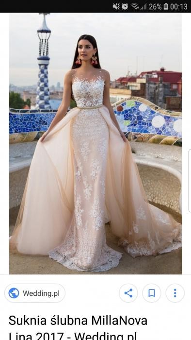 Sprzedam Suknię ślubną Millanova Lina. Suknia ma doczepiany tren na złotym paseczku.