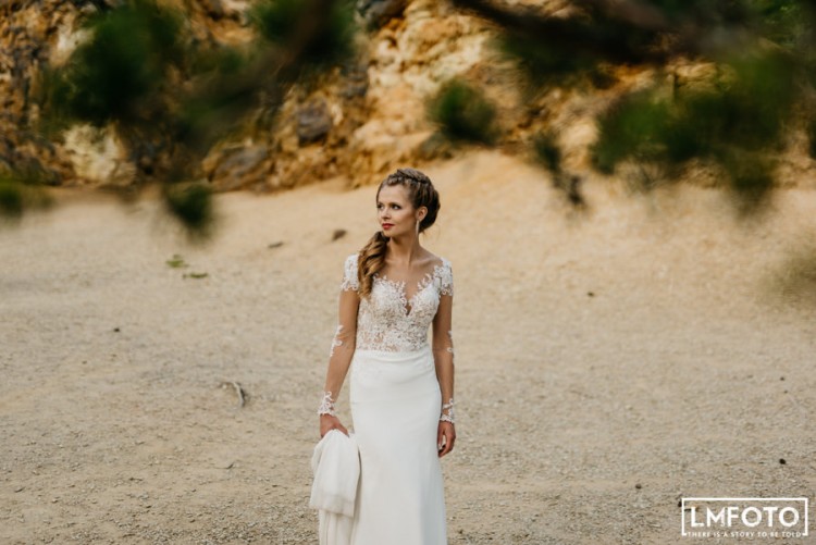 Góra sukienki z transparentnej koronki, subtelnie zaznaczony dekolt i piękne podkreślone plecy (wszyte miseczki push-up). Dół gładki z podpinanym terenem. Suknia mimo iż jest mocno dopasowana to okazała się bardzo wygodna i świetnie sprawdziła się na parkiecie. Suknia jest bardzo widowiskowa i wspaniale prezentuje się na pannie młodej. Posiadam również długi, 3 metrowy welon, który dopełnia cała stylizację. W razie potrzeby mam również do sprzedania ozdobę do włosów z kryształkami swarovskiego oraz srebrne, wiszące kolczyki.