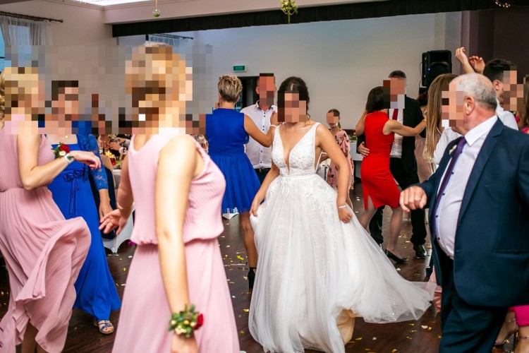 Górna część sukni wyszywana jest rożnymi ozdobami(koraliki, cekiny) dół sukni to kilka warstw lekkiego materiału(tiul) , który pięknie się układa jest bardzo lekki i wygodny. Jedna z pierwszych warstw jest w kolorze cappuccino, kolejna z warstw wyszywana jest cekinami oraz ma wyszywane wzorki co nadaje piękny mieniący się wygląd sukni. Suknia przepięknie układa się w tańcu, natomiast bogata góra sukni nadaje blask . Piękne zdobienia sukni sprawiły że wszyscy zachwycali się suknią. Gorąco Polecam !