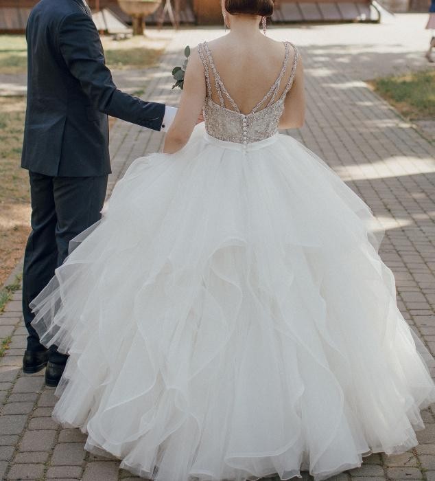 Mogłam swobodnie chodzić, suknia trzyma się w pasie, przez co ruch jest nieskrępowany. Długość można dopasować, nie potykałam się. Przy obrotach pięknie się rozkłada. Nie było mi w niej gorąco ani nie obcierały mnie ramiączka czy gorset.