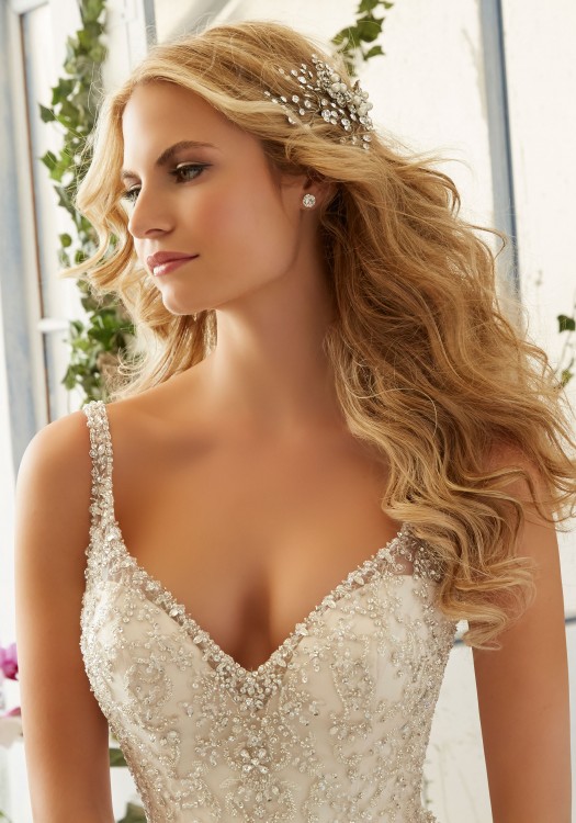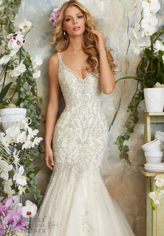 Piękna ręcznie wyszywana kryształkami Swarovkiego suknia sprowadzona z Nowego Yorku, marki Mori Lee Madeline Gardner.