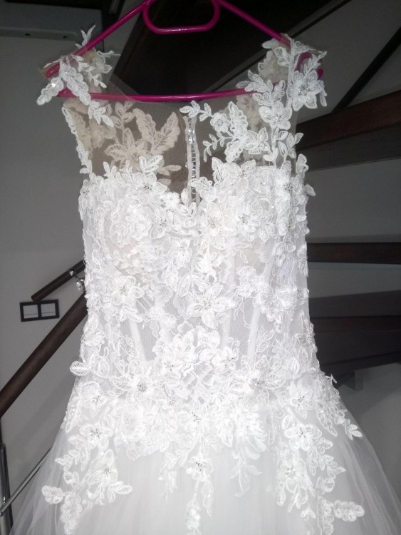Suknia nie posiada uszkodzeń i jest po profesjonalnym czyszczeniu.