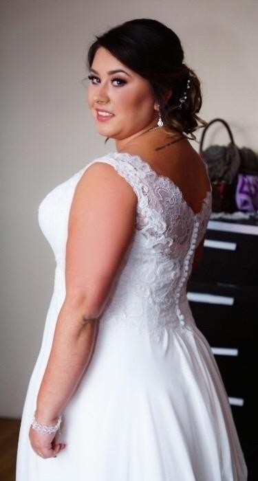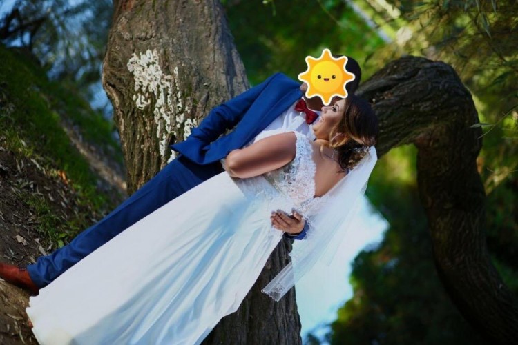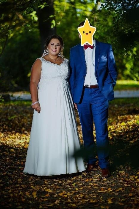 Witam, posiadam na sprzedaż piękną suknię ślubną firmy Nabla, model Abigail. Suknia jest w kolorze śmietankowym. Kupiona 2017r. w salonie za 3900 zł. Szyta na miarę na 160 cm wzrostu + 5 cm obcas. Halka z kołem. Poprzez wiązanie można ją dopasować do wcięcia w talii i bardzo ładnie ją podkreślić. Góra sukni jest koronkowa, dół muślin, piękne odkryte plecy z koronki. Suknia posiada tren. Do sukni dorzucę w gratisie welon (z jednej strony odpadły koraliki) i biżuterię ze zdjęć. Możliwość obejrzenia sukni w Legionowie i okolicach po wcześniejszym uzgodnieniu terminu.