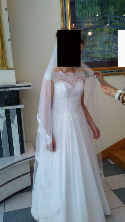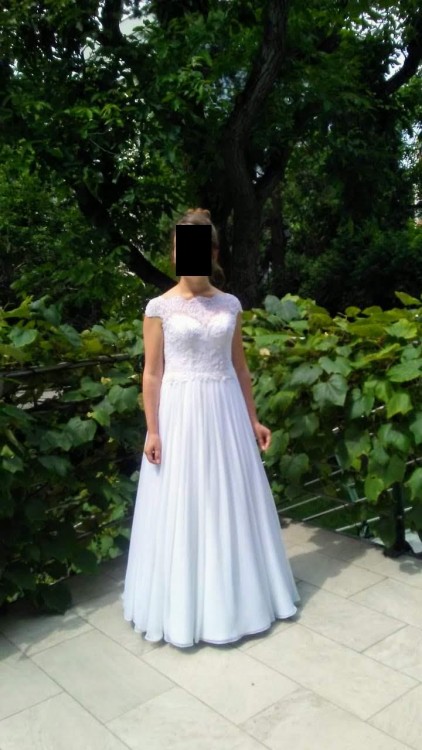 Sprzedam suknię ślubną firmy Nabla, model Alena. Suknia w rozmiarze 38 (wzrost 164 cm, obcas 8 cm, obwód bioder 108, obwód talii 80, obwód biustu 91). Fason "literka A".