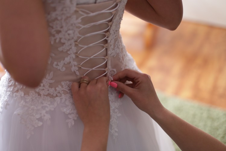 suknia ślubna nuda/biel koronka