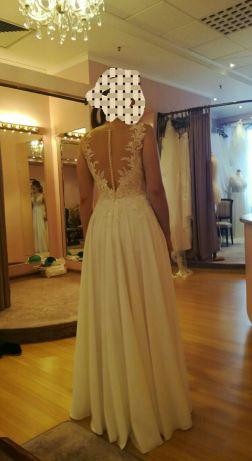Witam. Polecam suknie ślubną, którą miałam na sobie podczas ślubu w sierpniu tego roku. Suknia uszyta w 2019 r., jest na wzrost 167 cm + 7 cm obcas. Plecy są wycięte w literę V, podobnie jak dekolt. Suknia jest lekka, przewiewna i bardzo ładnie wygląda podczas tańca za sprawą dołu z muślinu. Jestem jej pierwsza właścicielką. Rozmiar 38/40 dokładne wymiary mogę podac na email. Góra wyszywana aplikacjami, dól muślinowy, wszyte miseczki rozmiar d ( możliwość wszycia innych).Z tyłu guziczki i suwak. Zapraszam kontakt email. Przymierzenie mozliwe na warszawskim bemowie po wczesniejszym umowieniu. Mogę podesłać więcej zdjęć na priv. Kontakt poprzez wiadomość. Zapraszam do kontaktu.