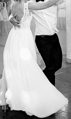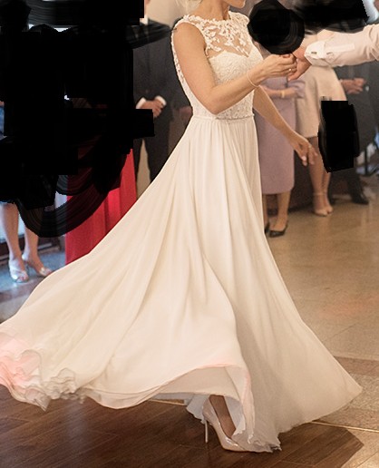 Dół jest luźny, zrobiony z tkaniny Muślinowej, przez to jest leki oraz pieknie się układa, podczas tańca oraz chodzenia. Lekki materiał nie pogrubia, a wydłuża sylwetkę.