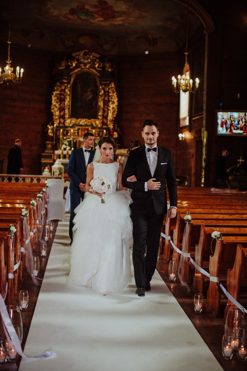 Góra sukni z przodu prosta, z tyłu posiada piękne wycięcie, które eksponuje plecy.