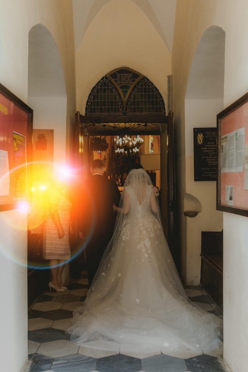 Suknia ma odpinany długi tren. Bardzo wygodna.