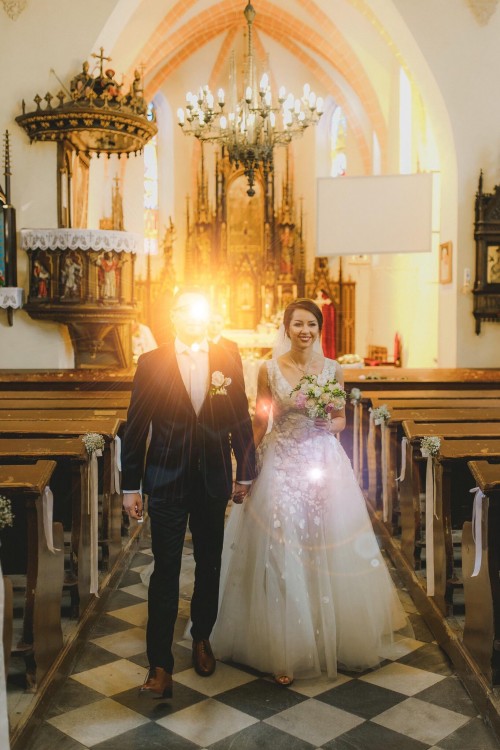 Suknia ślubna z długim odpinanym trenem