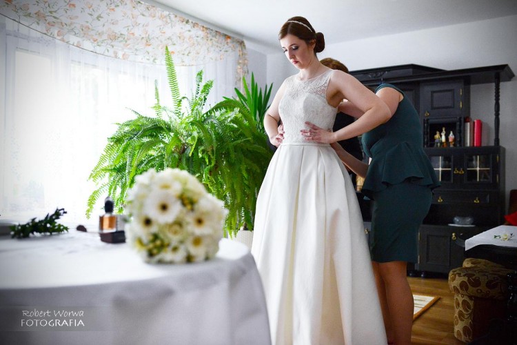 Dół: rozkloszowany, z podszewką i warstwą tiulu. Pięknie układa się w tańcu (była to rzecz która najbardziej cieszyła mnie na moim weselu - wirująca suknia).