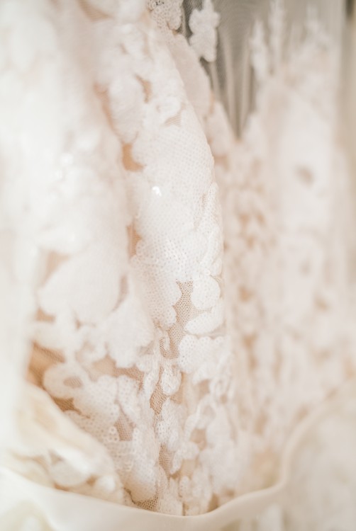 Suknia podszyta taśmą taneczną, dzięki czemu świetnie układa się w tańcu.