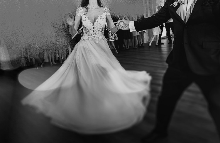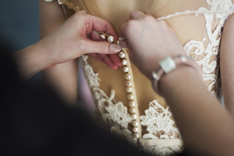 Suknia posiada tren, który można bez problemu podpiąć bo są do tego przyszyte niewidoczne zatrzaski.