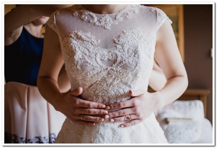 Sukienka posiada na gorsecie oraz z tyłu delikatne cekiny. Gorset posiada wewnętrzne miseczki więc nie potrzeba już dodatkowego biustonosza. Z tyłu piękny rząd perłowych guziczków.