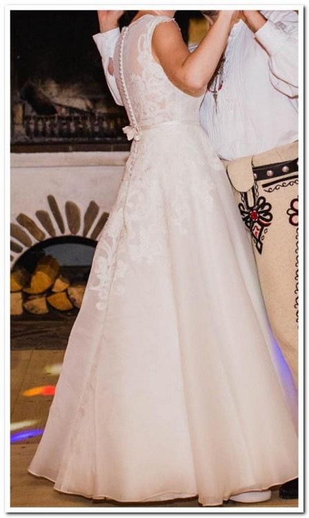 Suknia jest bardzo lekka i zwiewna. Pięknie się układa podczas tańca i jest wygodna podczas siedzenia.