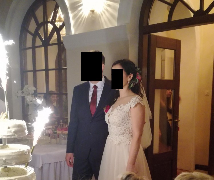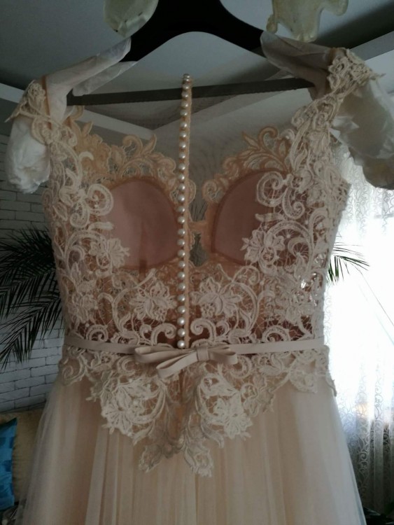 Została skrócona do mojego wzrostu 169+7 cm buty, stan sukni idealny. Gratis oddam welon i żakiet dopasowany idealnie do koloru sukni.