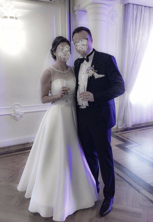 Suknia została kupiona w salonie ślubnym Madonna w Warszawie, jestem jej pierwszą właścicielką. Suknia szyta na rozmiar 36/38 i wzrost 170 cm. Do sukni nosiłam buty na obcasie w wysokości 5 i 6 cm. Suknię założyłam 2 razy - na ślub oraz sesję ślubną w innym terminie.