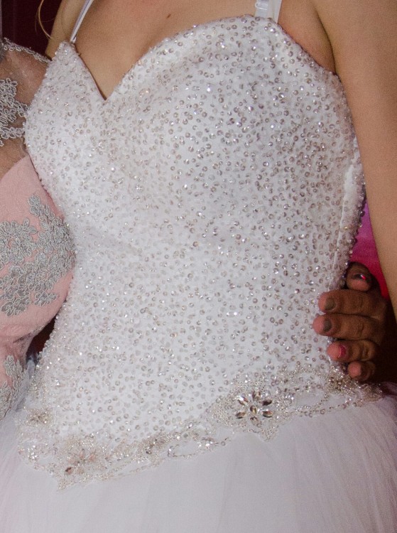 Kupiona w salonie Santa Nowogard. Rozmiar 34,36 szyta na mnie (170cm) plus 10 cm na buty. Możliwość skrucenia. Z tyłu jest zameczek. Dodaje bolerko, buty rozmiar 40 (nowe nieużywane). W razie pytań dzwoń.
