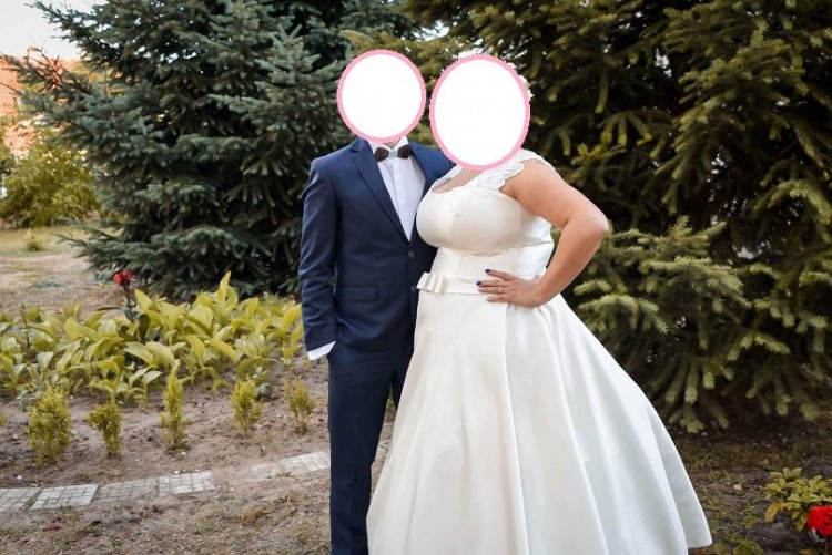 Suknia dla kobiety o pełnych kształtach. Suknia na kole. Regulowany gorset. Szyta dla wzrostu 165 + obcas. Rozmiar od 46+