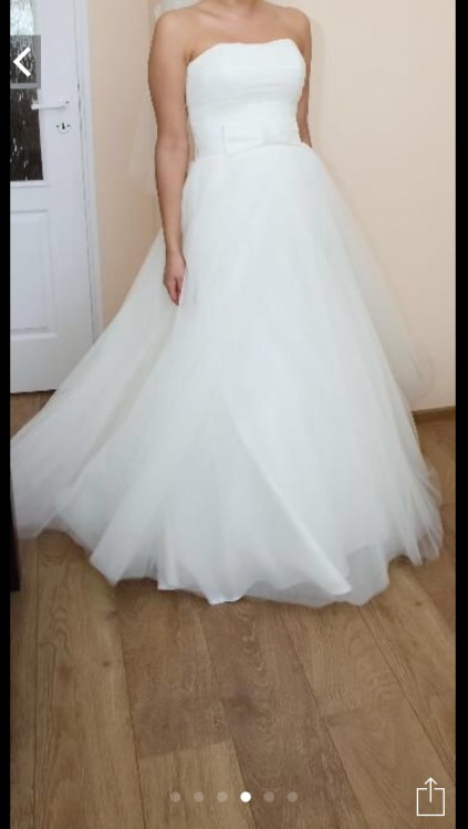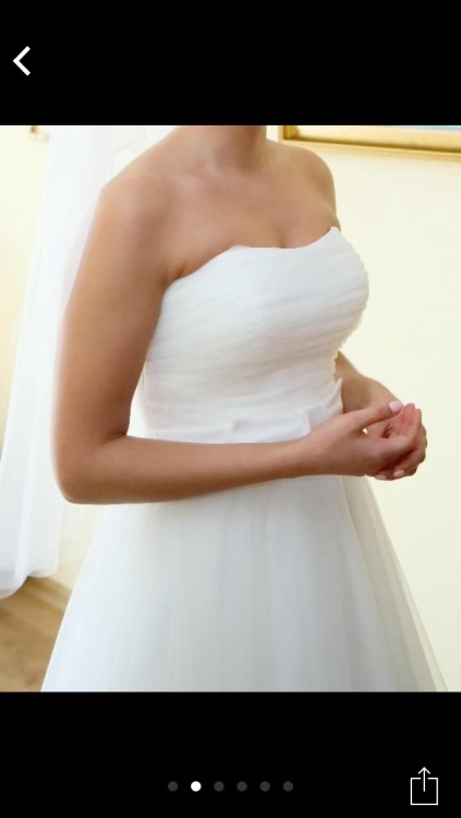 Sprzedam piękną tiulową suknie ślubna z drapowanym gorsetem i zwiewną spódnicą. Suknia model ( princess ) E- 3093 T firmy Elizabeth Passion, jest lekka oraz bardzo wygodna. Dodatkowo do sukni dołączam satynowe bolerko, halkę, oraz welon. Gorset zapinany na zamek oraz guziczki. Pasek, który dodaje uroku sukni tworząc przepiękną całość. Do sukni jest możliwość dokupienia płaszczyka z koronki z baskinką i przedłużonym tyłem, które nadają kreacji eleganckiego, niepowtarzalnego wyglądu. Suknia ma lekko oberwany tiul u dołu sukni (możliwość naprawy). Suknia pasuje na rozmiar xs/s, na wzrost 160-165 ( z możliwością przeróbek ) cena 1000 zł.