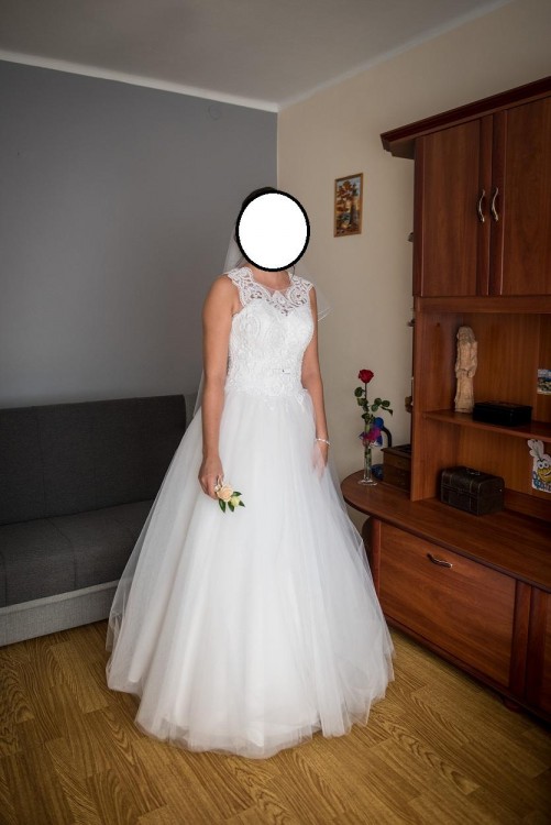 Wyjątkowa suknia ślubna w rozmiarze 36/38 możliwość regulacji rozmiaru. Gratis welon. Cena do negocjacji.