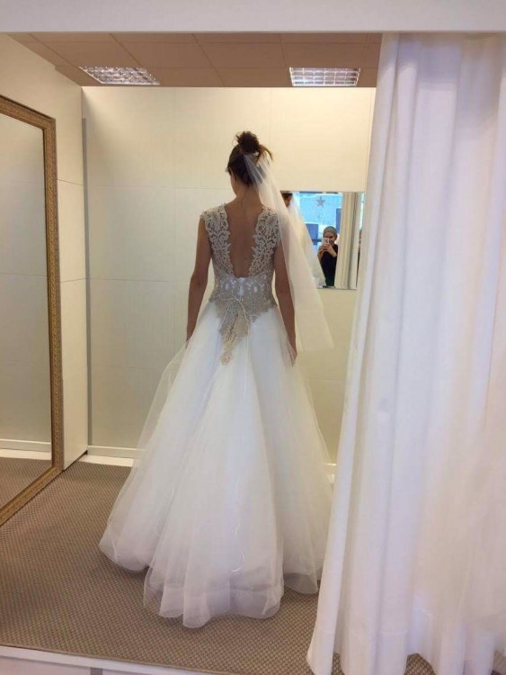 Na sprzedaż suknia ślubna, rozmiar 36/S. Szyta na miarę na wzrost 165cm.